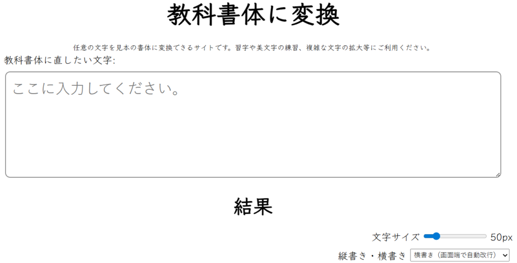 また「教科書体に変換」は、サイト自体がとてもシンプルです。