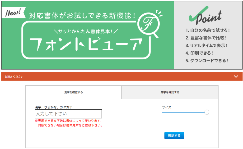 | 書体見本シミュレーター | フォント風 | DL不可 | 無料 |