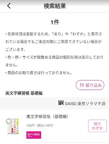 近くのダイソーに「美文字練習帳」があるかを確認する方法