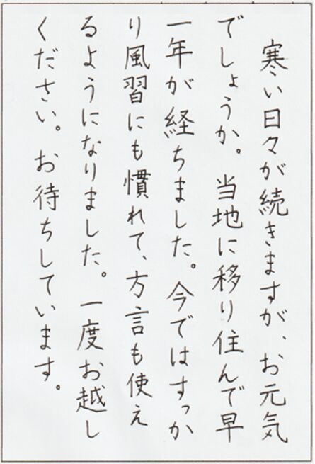 | 問5 | はがきの通信文 官製はがきと同じ大きさのわく内に80字程度の通信文を体裁よく書く問題(3級ははがきの宛名) |