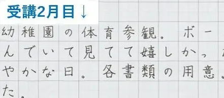 受講前は字に自信がないので字を小さく書くクセがついていましたが、2か月経つとしっかりと大きく枠に合わせて書けています。