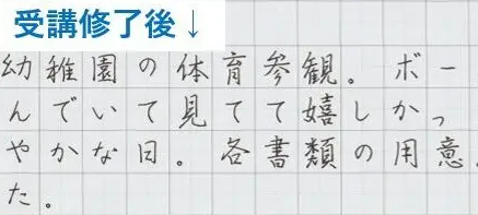 効果検証①:受講前・受講後で同じ字を書いて比較
