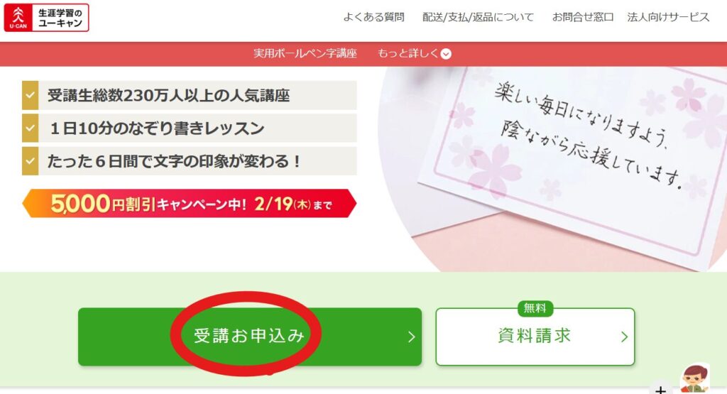 ユーキャンの実用ボールペン字講座は郵送での申し込みも可能ですが、一番のオススメはWebからの申し込みです。