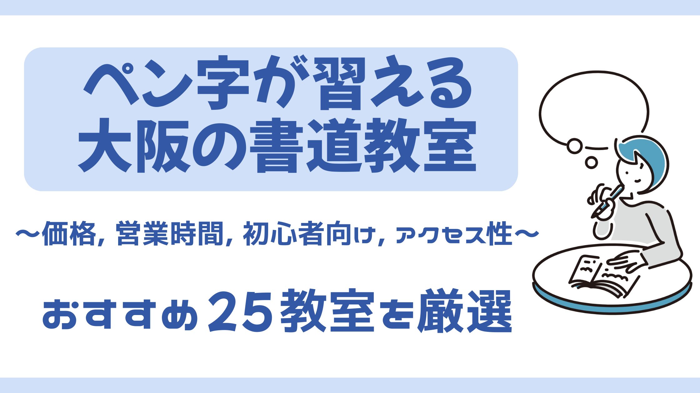 【大人のペン字教室】大阪の25教室を価格・時間・初心者向け・アクセスの4観点で厳選